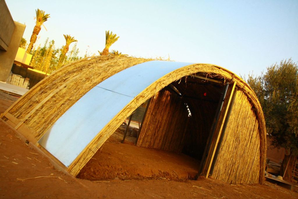 Cette étape primordiale nous permis de tester et adapter le design de la structure acier, son interface avec la charpente bois, la fabrication, le choix du diamètre et et la flexion des nouilles, la pose des tôles… Le prototype se voulait un échantillon montrant en œuvre tous les détails du LT1, jusqu’au hérisson intérieur et enduits terre paille. Objet pouvant être montré aux personnes intéressées par son déploiement. Il connu finalement une autre destinée, il fût démonté et remonté à Aït Othman pour héberger une famille dans le besoin.